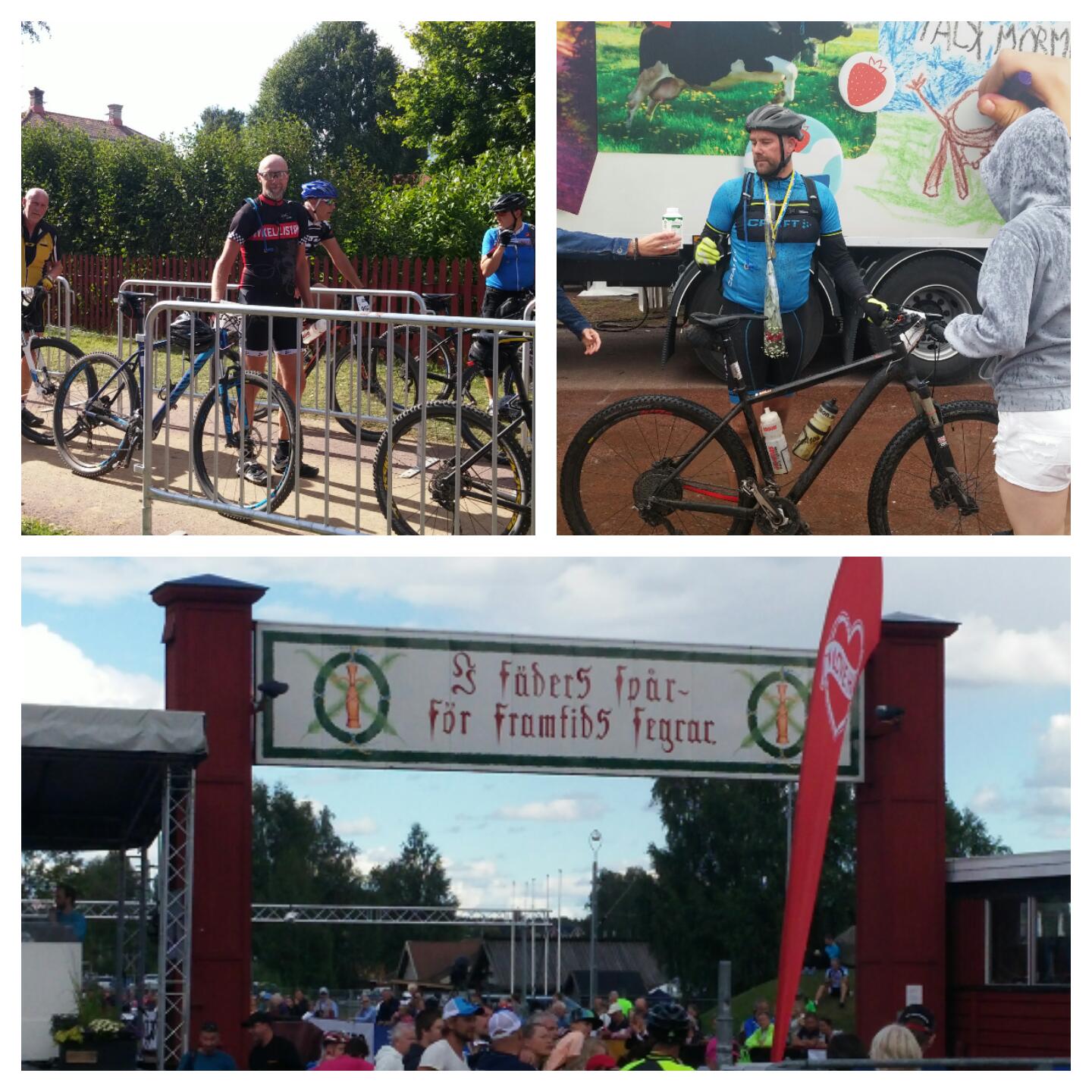 Vädret var med oss ända tills ca kl 16:45 sen kom regnet igen. Peder hann i mål innan dess men Jocke fick bli lite blöt och smutsig. Loppet var tuffare än de hade trott men de kämpade väl.