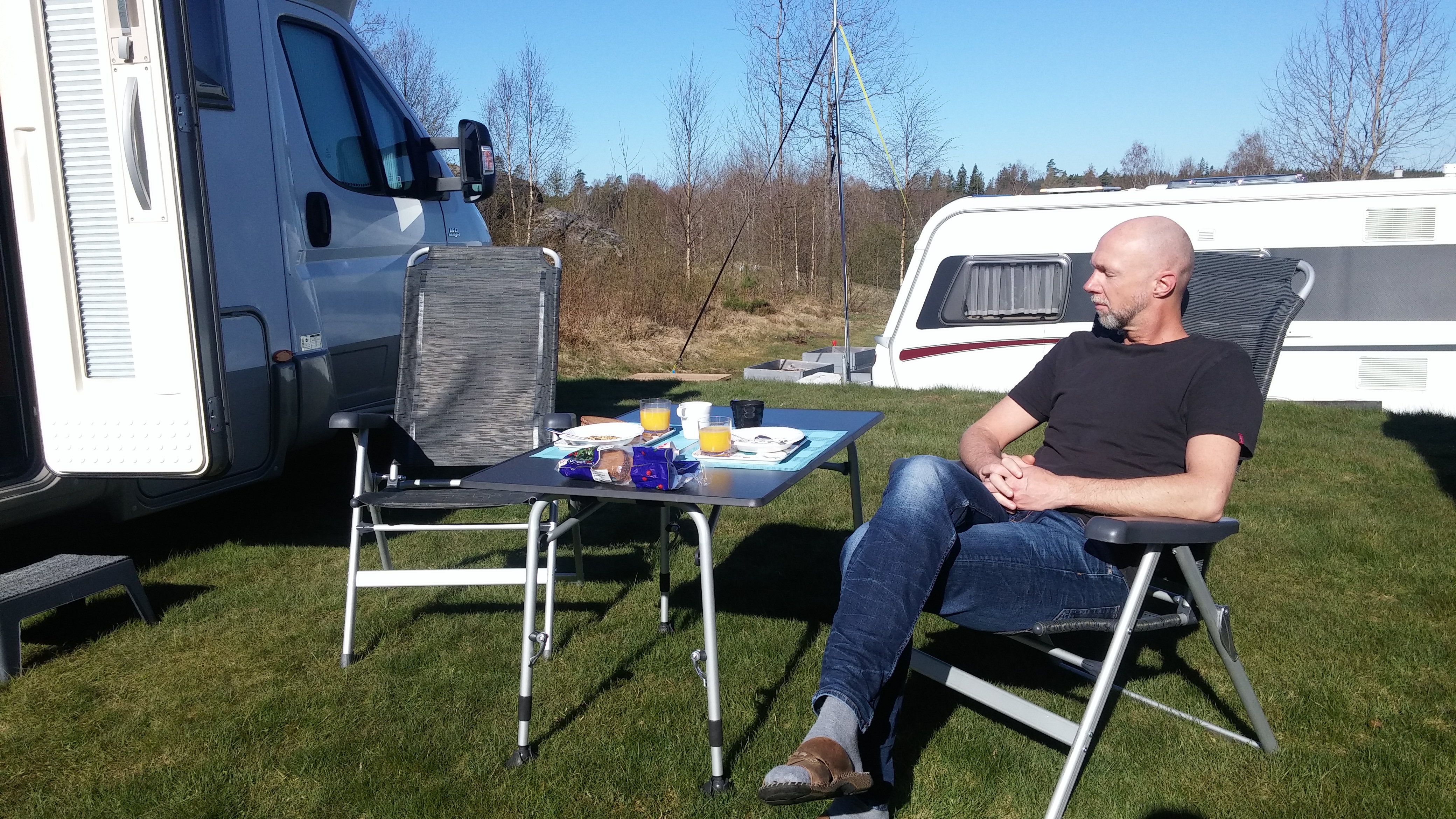 Vi vaknar till ännu en lika fin dag. Varmt och skönt så naturligtvis intas frukosten ute i solen.