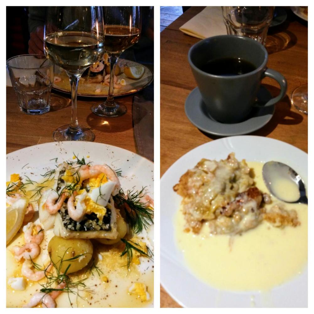 Väl tillbaka vid bilen tog vi en dusch innan vi skulle luncha på restaurangen. Vilken fantastisk lunch, bakad torskrygg med potatis, räkor, krossade ägg och sås med pepparot. Till dessert fick vi knäckig rabarberpaj med vaniljkräm och kaffe. Mmmmmmmm så gott det var.