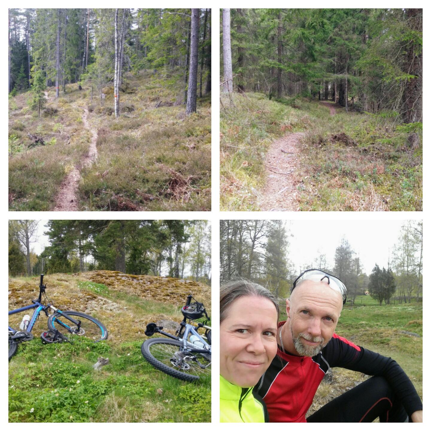 Vi cyklade utmed en vandringsled upp till Högaliden där det fanns lite mountainbike leder. Sedan en annan led tillbaka över bokstavligen stock och sten, ganska svårframkomligt bitvis(utmaning) 😱.