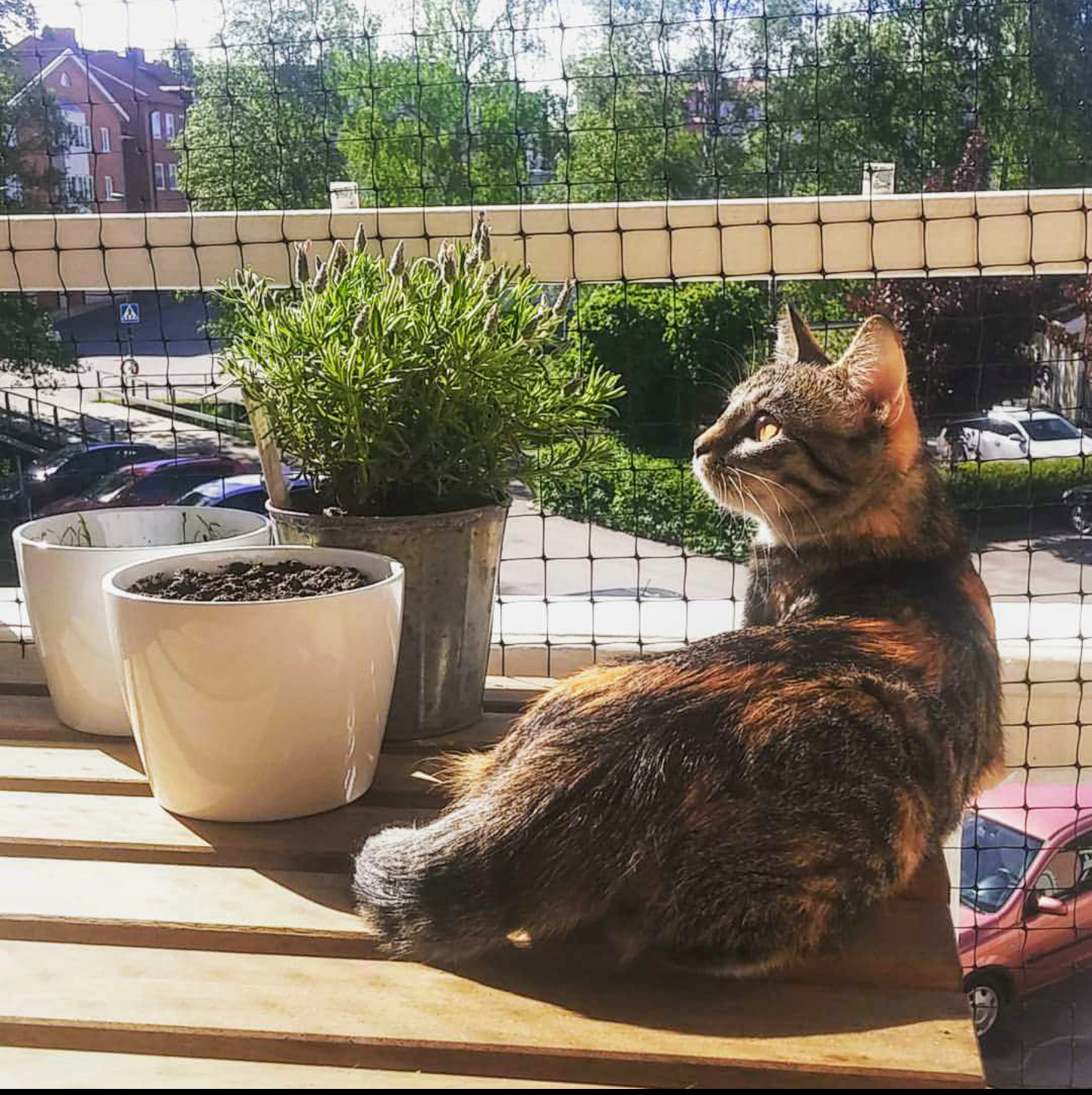 Det var inte bara därför vi åkte till Emelie utan planen var också att hjälpa henne att näta in hennes balkong så att hon och Sky kan vara på balkongen utan att katten behöver vara kopplad. Blev faktiskt riktigt bra.