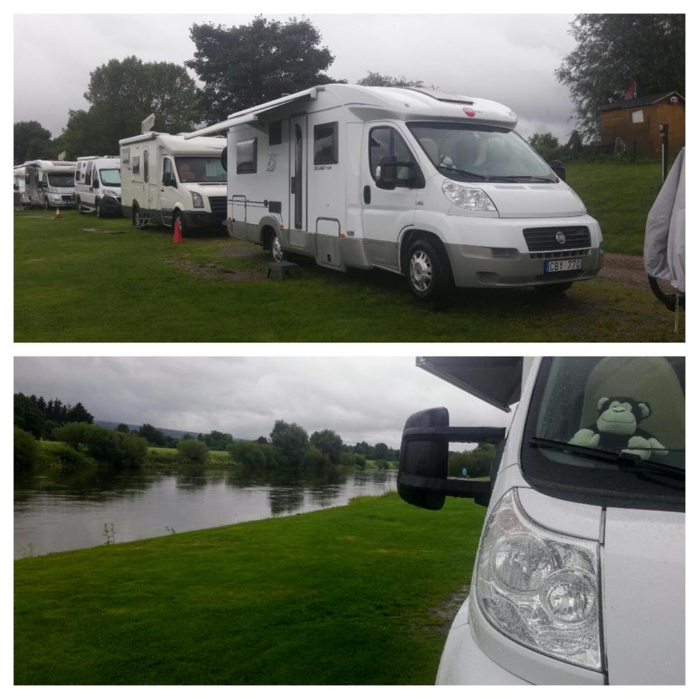 Men vi rullade på och stannade i Holzminden. Vi fick som vi önskade en av platserna vid floden.