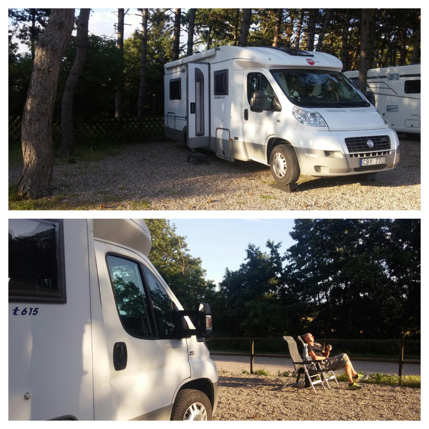 Vi hittade en ställplats som lovade vindskyddade platser så vi åkte dit, ställplats Gammendorf. Det fanns plats så här fick det bli, sista natten denna semester.