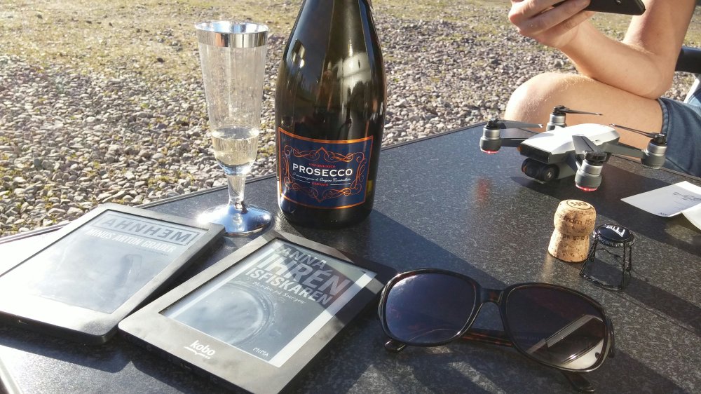 Tyvärr blåste det lite för mycket så premiärflygningen får vänta till på söndagen. Istället blev det bok i solen och ja faktiskt lite Prosecco då jag hade namnsdag (gäller att hitta anledningar att fira med bubbel)😄☀
