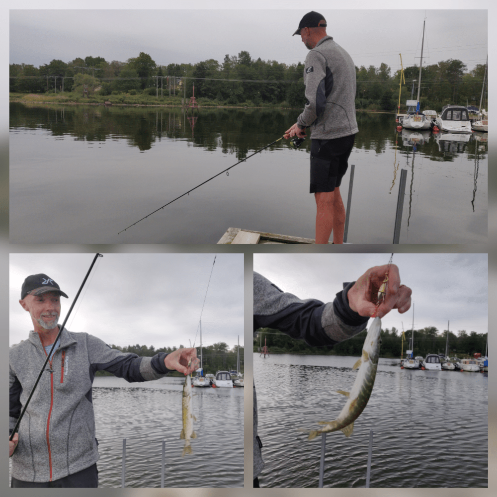 Nybörjartur kanske men kul att det nappade. 2 små gäddor blev det men den ena släppte på vägen upp.