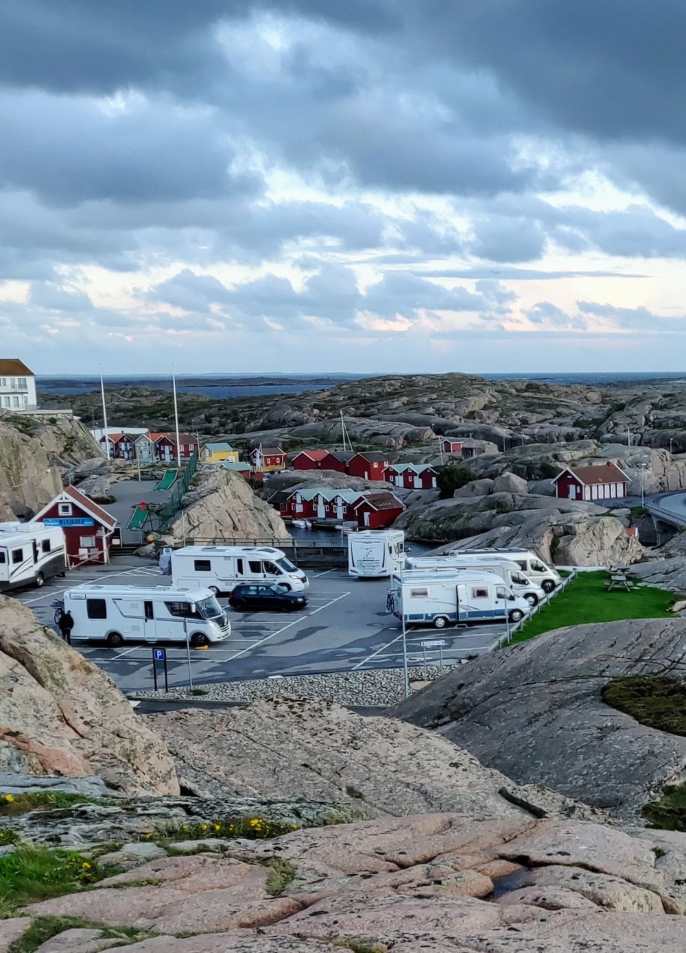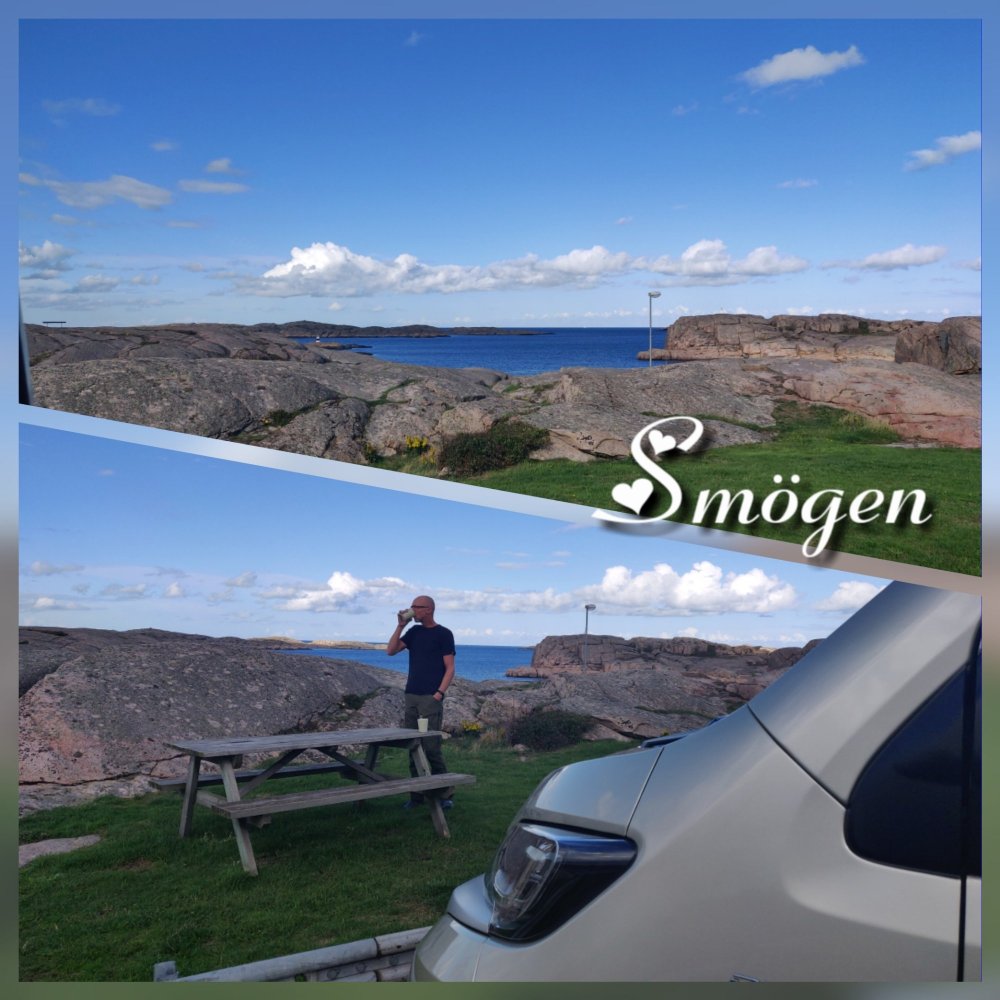 Natten var inte rolig, kraftig blåst och regn, kändes som om bilen skulle välta.😬 Så nu lämnar vi Bohuslän och hoppas hitta sol och få mindre blåst söder ut. Vi får se var vi hamnar i natt.