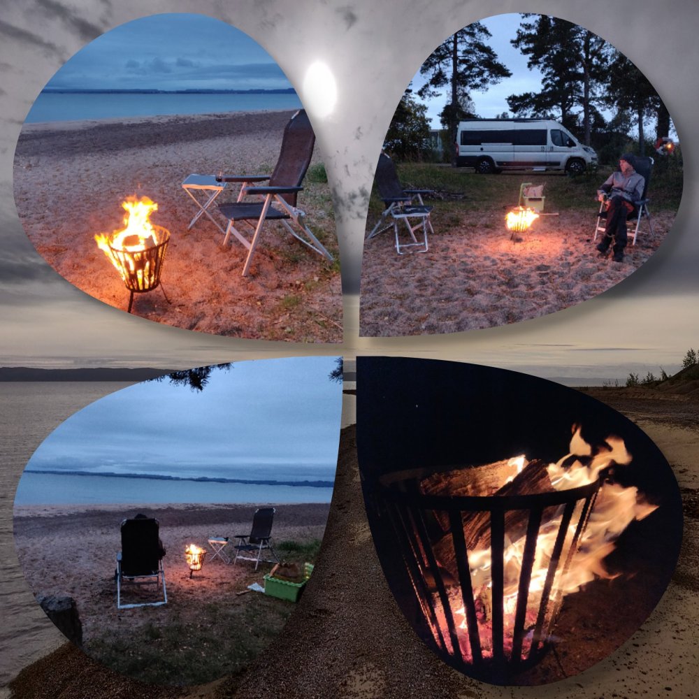 Underbart ställe att fricampa på precis vid Vätterns kant. Peder hade plockat med sig lite ved och våran eldkorg så det blev lite kvällsmys på stranden.