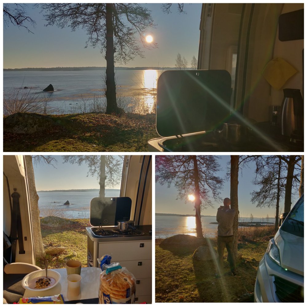 Frukosten kunde vi äta med öppen dörr och solen värmde som om vi var minst i april, så underbart ☀️.