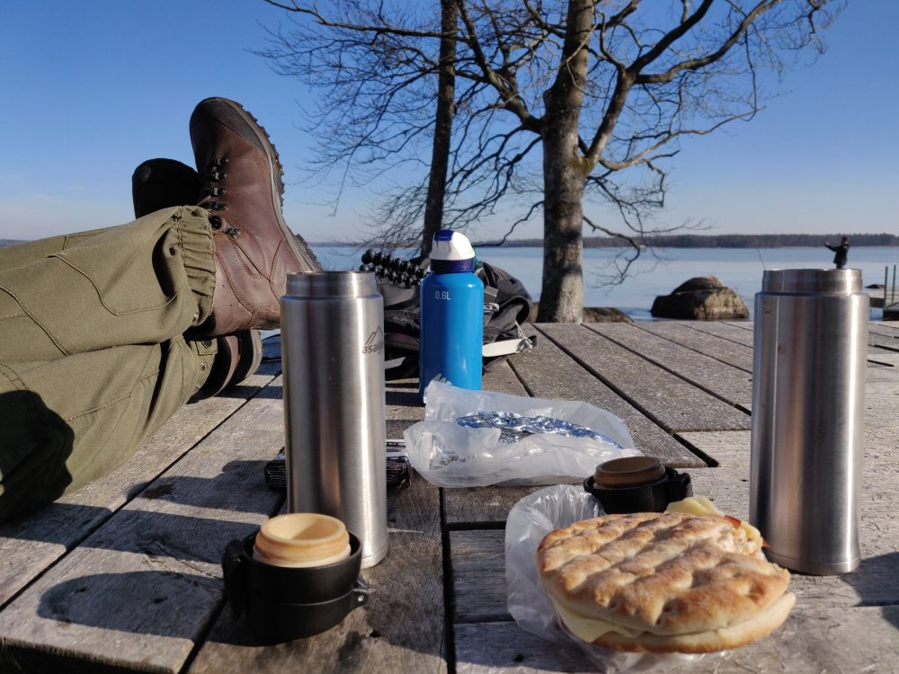 Medhavd kaffe och mackor intogs i solens sken.