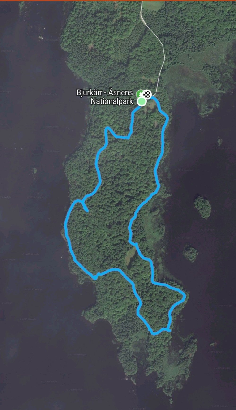 Mycket välordnad park med sittplatser och grillplatser. Slingorna var inte så långa så vi bestämde oss för att åka till andra sidan sjön också, ca 2 mil, till Bjurkärr.