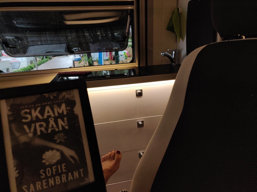 Jodå väderprognosen stämde. Det började på kvällen med regn och åska. Vi fick gå upp på natten för att stänga takluckorna helt.