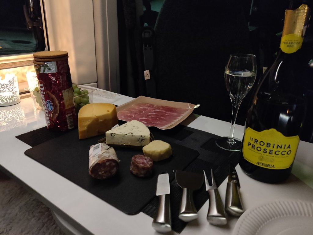 När vi kom fram blev det lite ostbricka och bubbel. Var har vi då hamnat undrar man då, jo i Påskallavik.