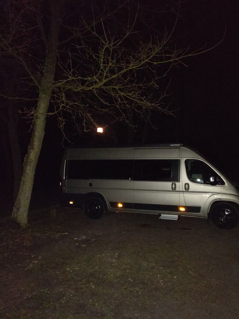 Vi åkte till några tänkbara stopp men hamnade nere i Sandhammaren. Här hade dem ändrat reglerna sen sist. Satt upp höjdbommar, max 2,3 m och endast parkering för klass 1. Vi trotsade detta för en natt.