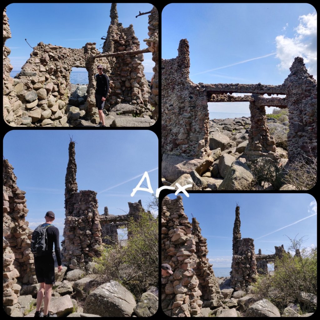 Vi valde att stanna ytterligare en natt här då vädret lovade sol. När jag googlade vad som fanns i närheten så hittade jag att Vilks ”Nimis” fanns bara ca 9 km bort. Vi tog cyklarna dit.