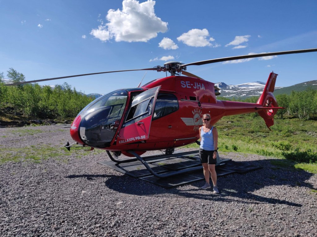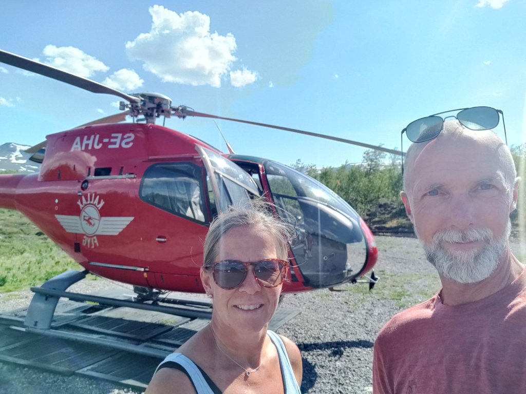 Och ja vi tog en helikoptertur. Igår kväll pratade vi med några andra där vi stod och fick tipset. Lät ju som ett toppenförslag. Helikopter upp och runda Kebnekaise.