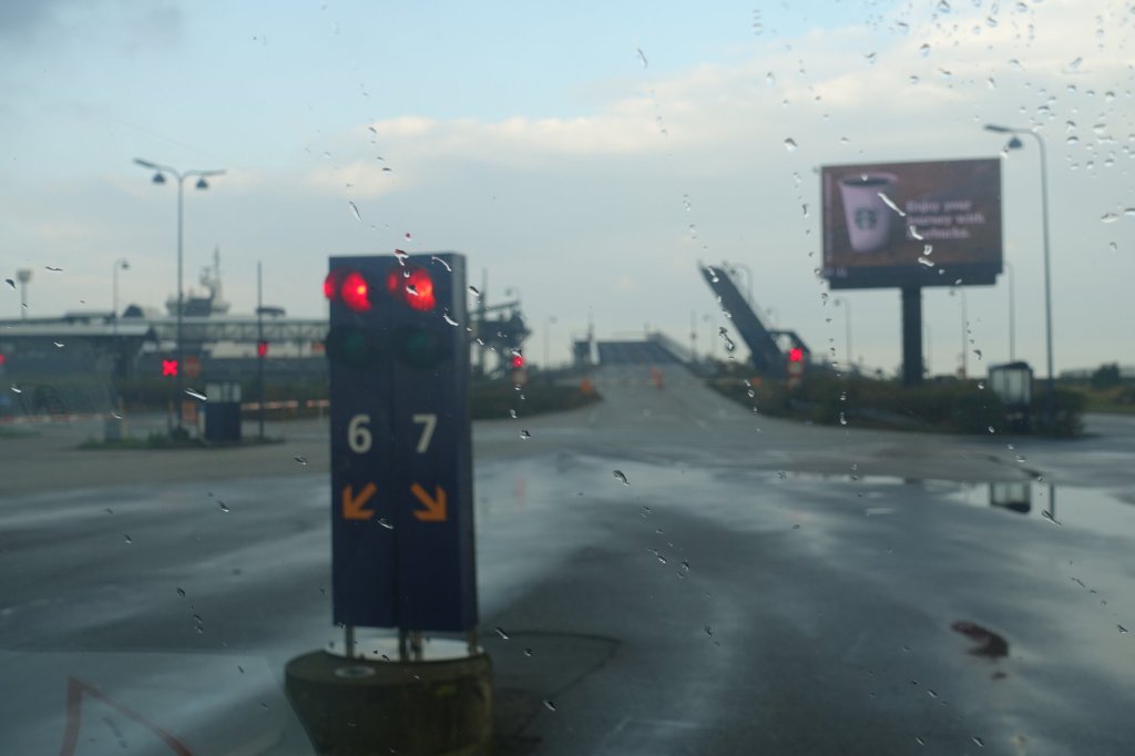 Vi hade läst att man kunde stanna i bilen under överfarten om man sa till vid incheckningen, sagt och gjort, inga problem.
