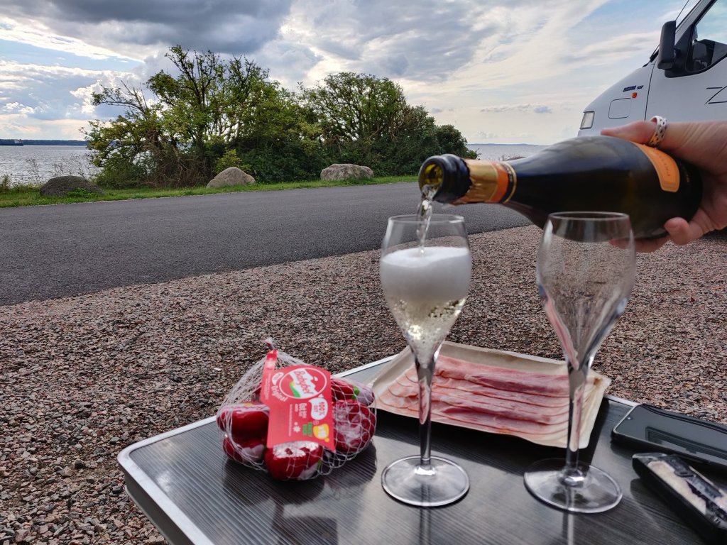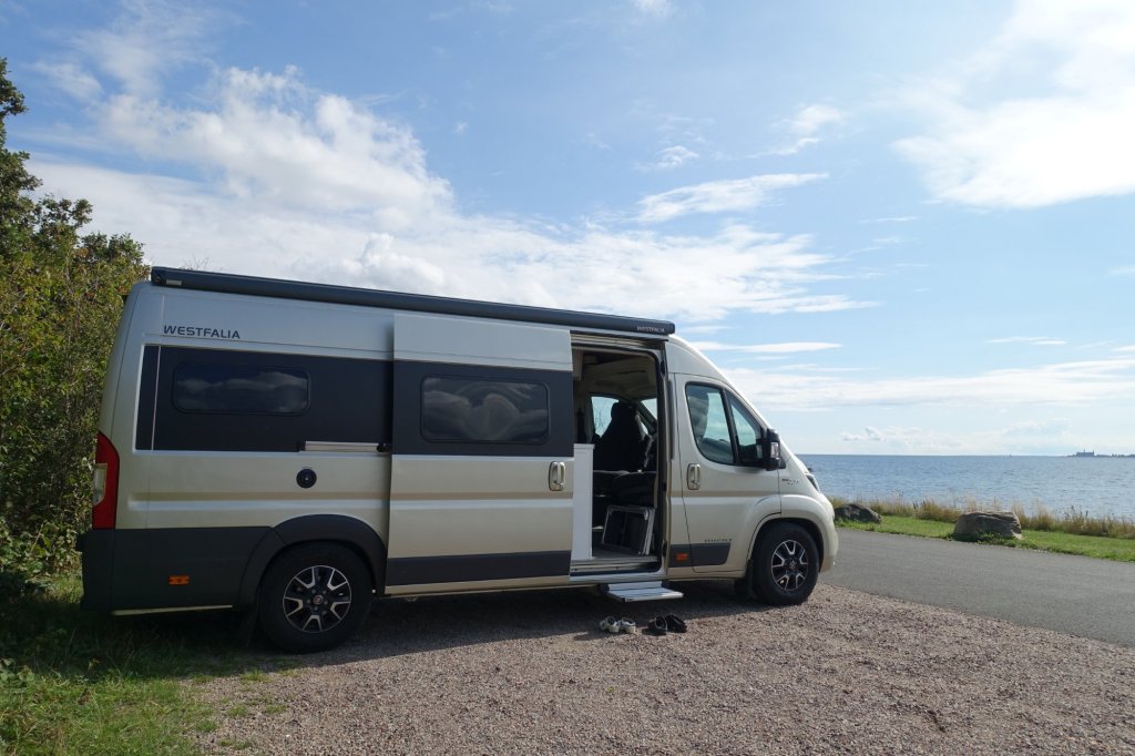 Vi tänkte stanna över natt någonstans på svenska västkusten. I appen hittade vi en plats strax norr om Helsingborg som vi kollade in och inga tvivel om att det var en kanonplats.