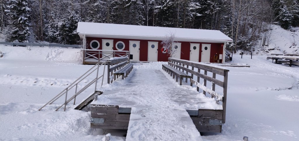 Jodå, de hade fixat så att det var rörelse i vattnet så att det inte fryser. Trevligt, då kanske vi kan testa vinterbad senare.