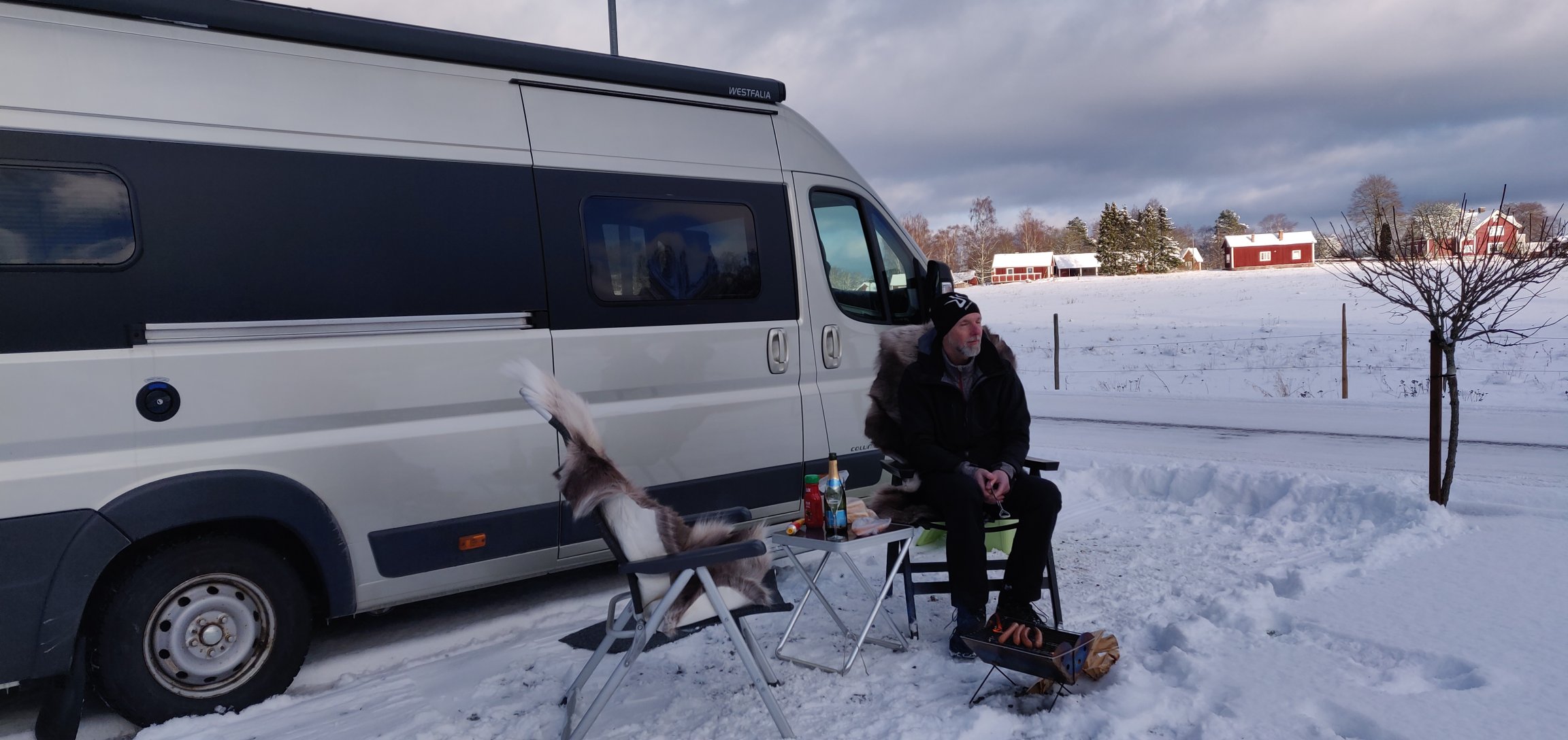 Vi hade valt att inte fylla vatten i bilen då vi bara skulle vara borta 1 natt. Vi hade dunkar med vatten istället. Kanske tur det för tre av bilarna bakom oss hade alla fått frusna vattenledningar under natten.