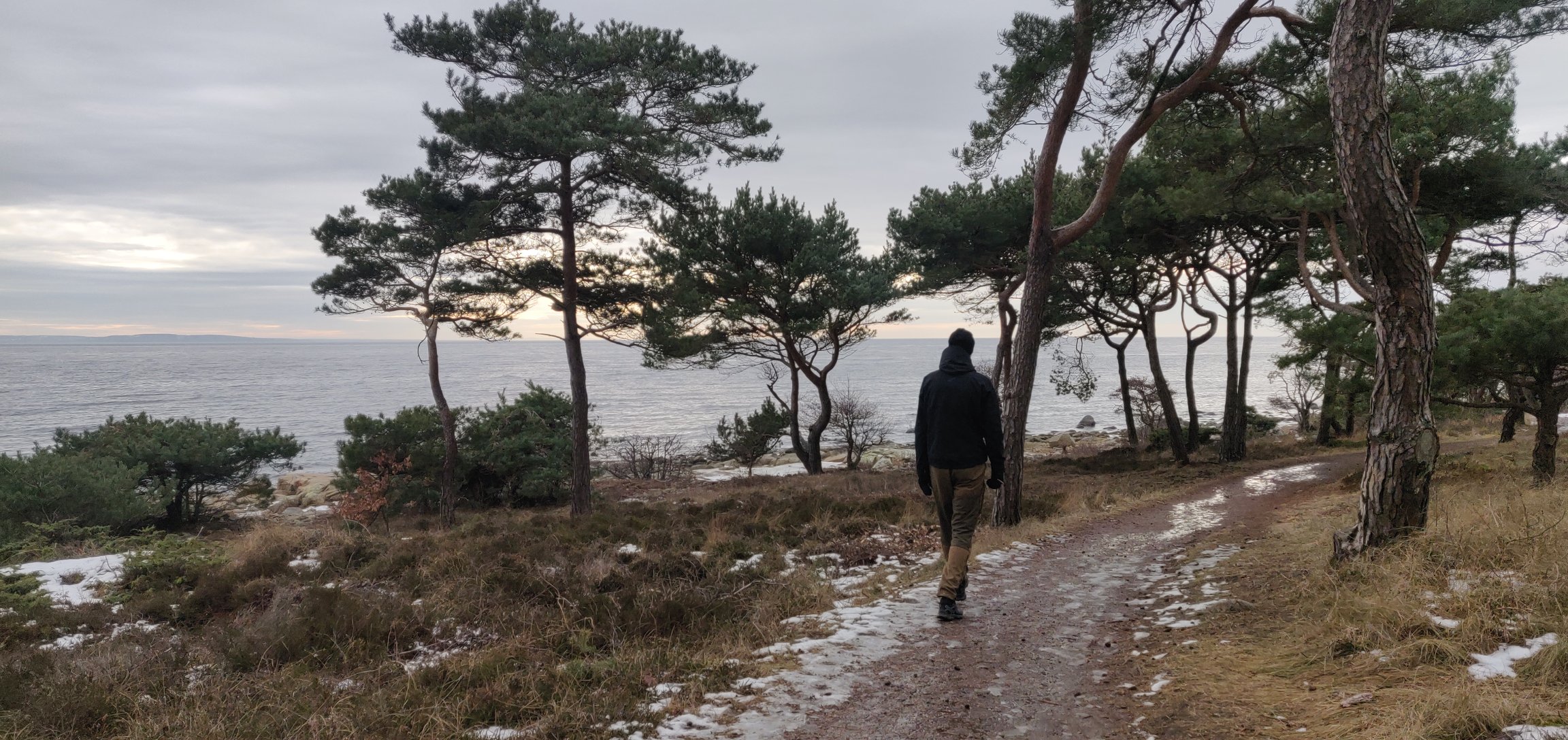 Vi gick norrut på Prins Bertils stig, så mysigt att komma till havet igen. Det var ganska blött och isigt på sina ställen.