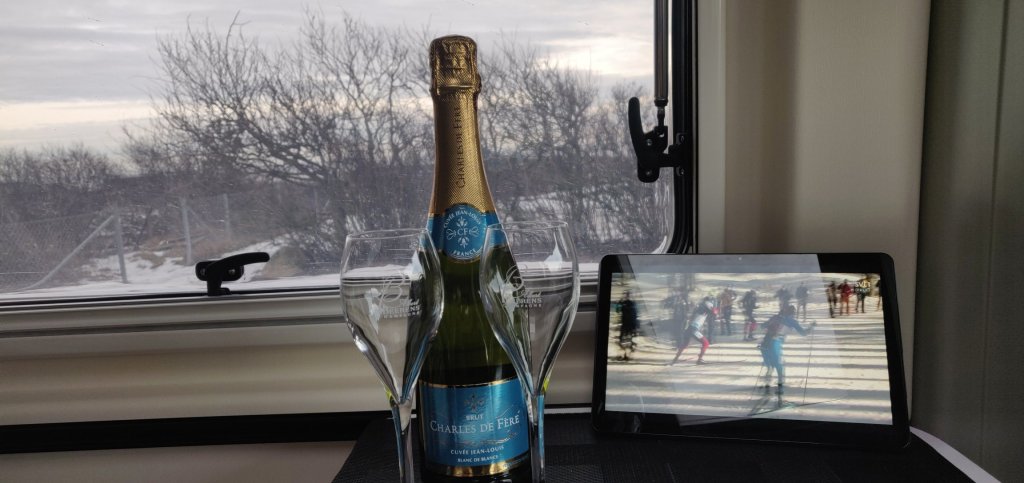 Resten av kvällen värmde vi oss inne i bilen med god mat och dryck.