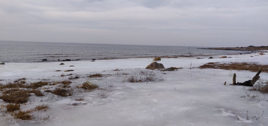 Det låg en del is på stränderna där vinterstormarna virvlat upp vågorna i vinter.