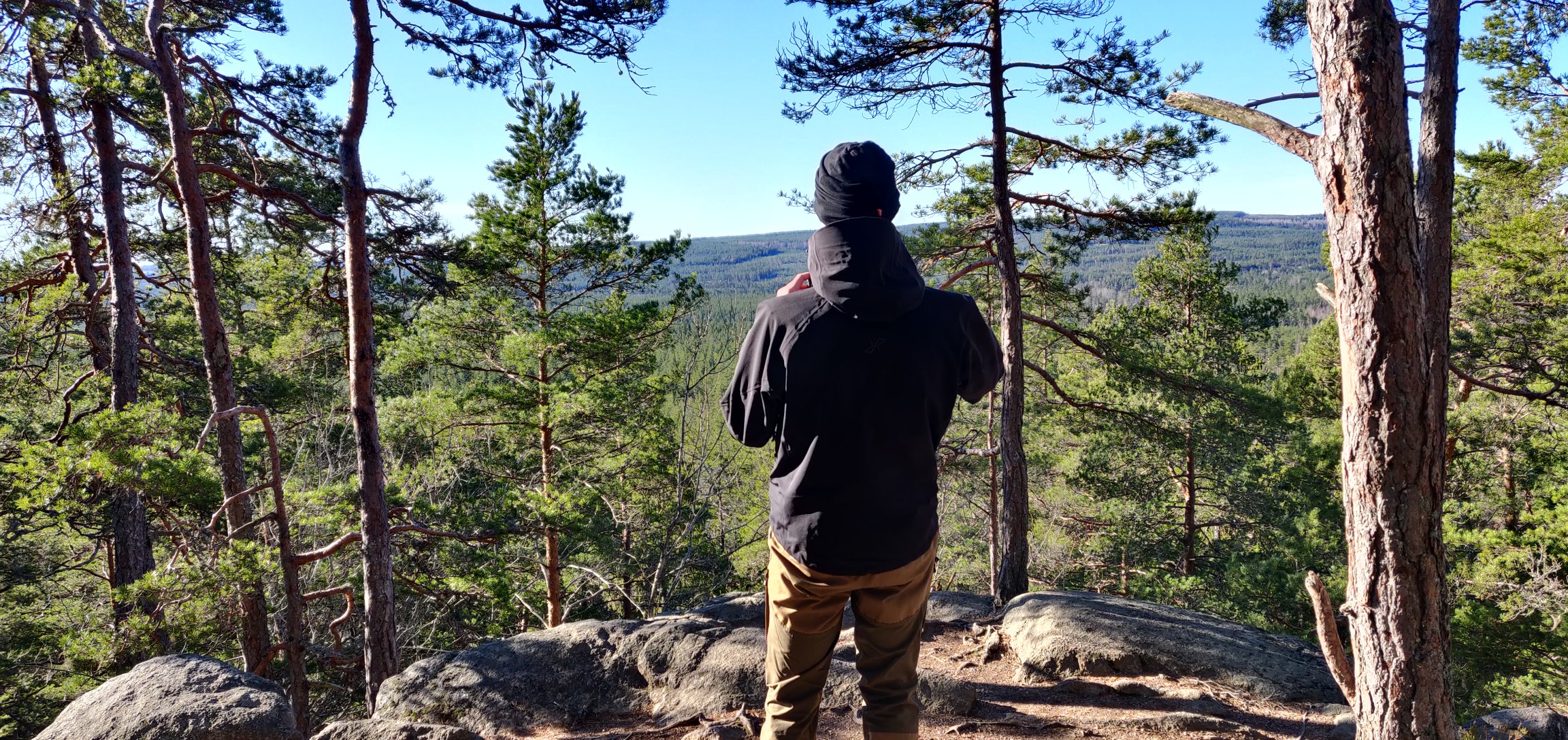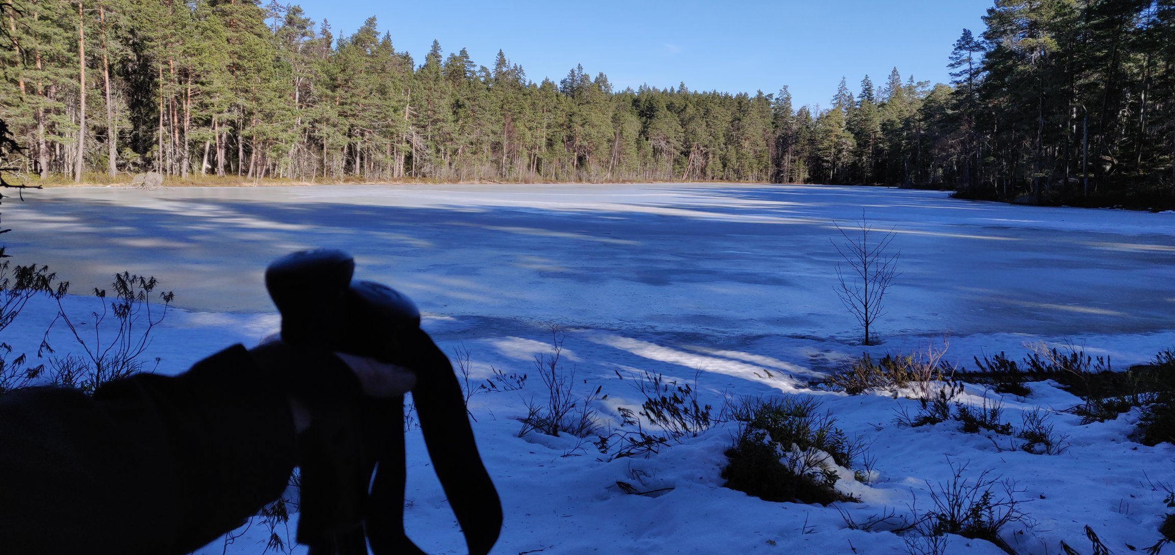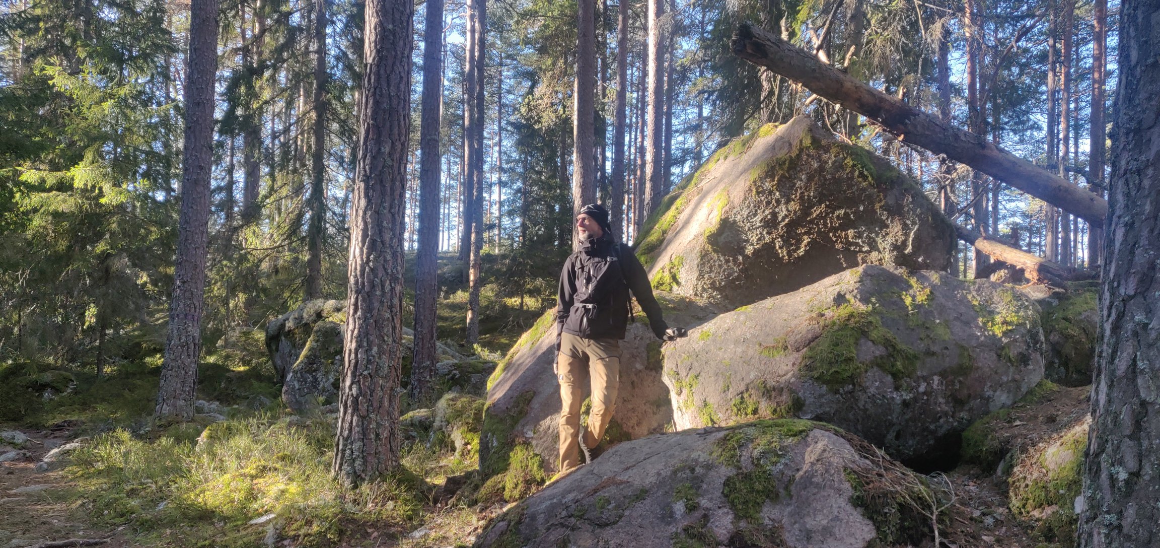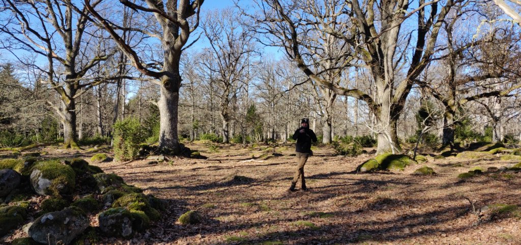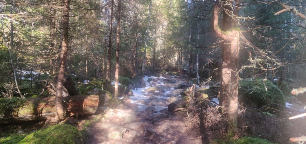 På sina ställen låg det en del snö kvar men annars var det mestadels barmark. Naturen bjöd på en trollsk skog med mycket stenar och klippblock klädda med mossa. Träd som låg som plockepinn och ett par gölar.
