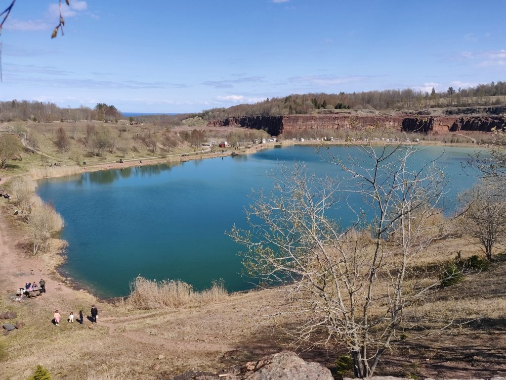 Själva stenbrottet var fantastiskt, så fint med klipporna och vattnet i mitten. Vi tog oss upp på höjden och intog lite lunch.