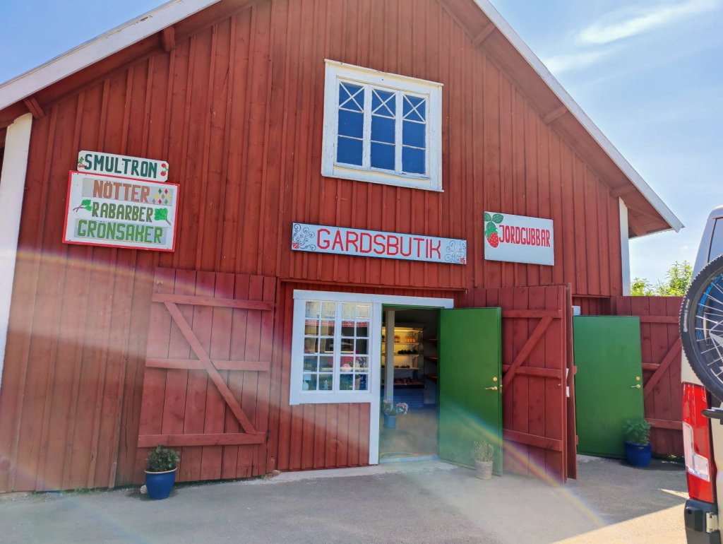 På vägen hem köpte vi jordgubbar på en gårdsbutik som vi intog vid Vättern.