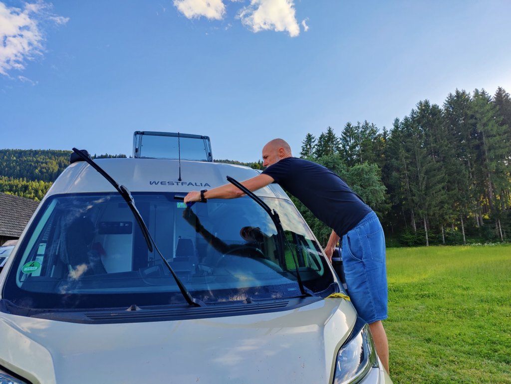 Ingen sen kväll här då det var resdag nästa dag igen. Peder hann dock med att putsa av vindrutan från alla insekter vi mosar på vägen.