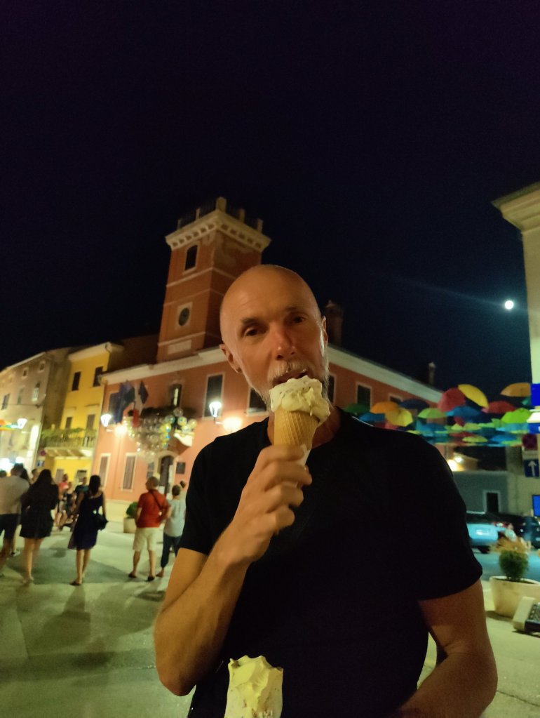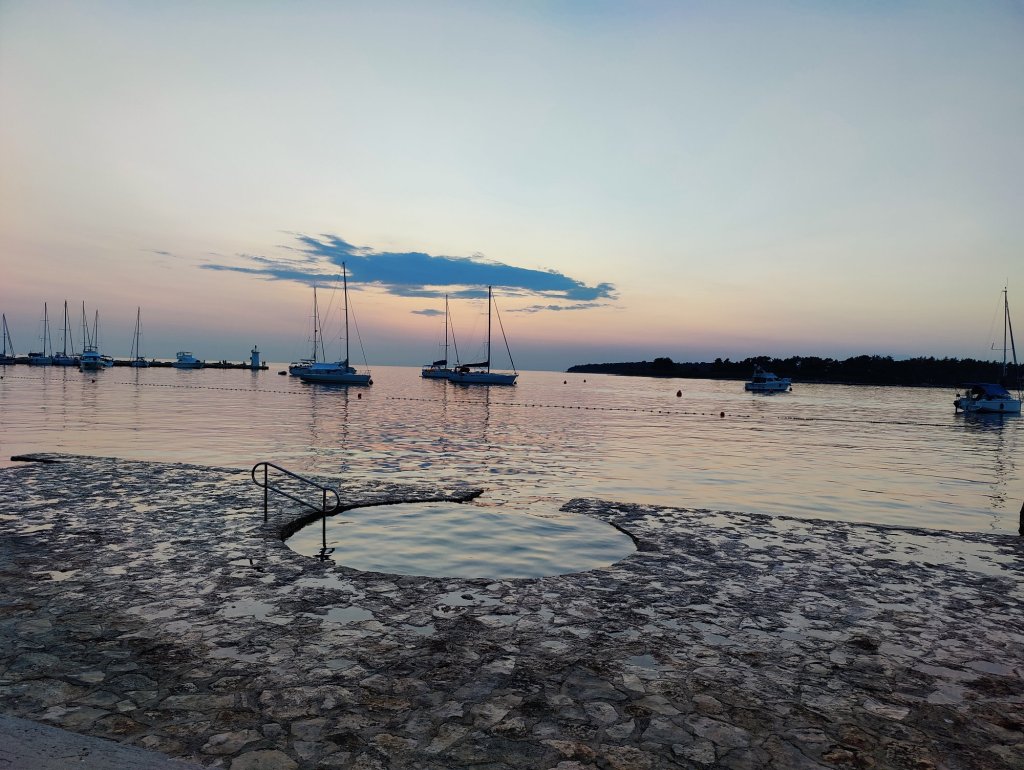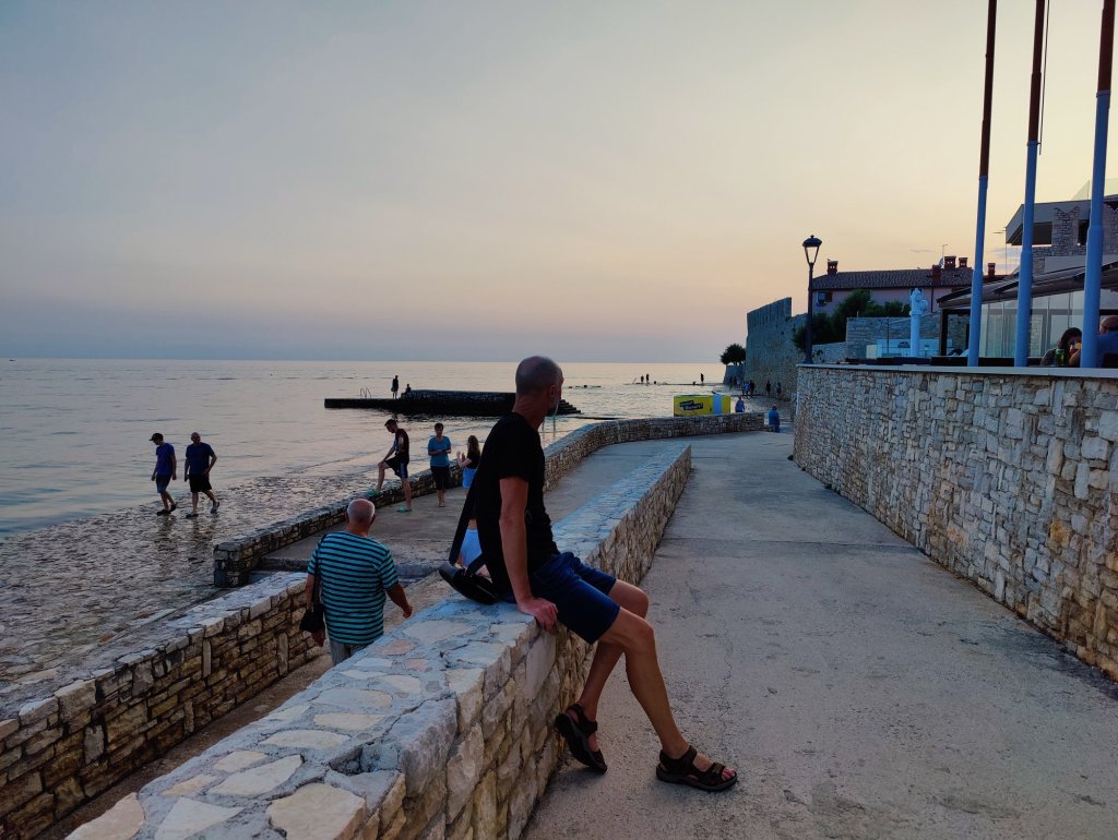I går gick vi in till Novigrad på kvällen, längs vattnet fanns badmöjligheter som heter duga.
