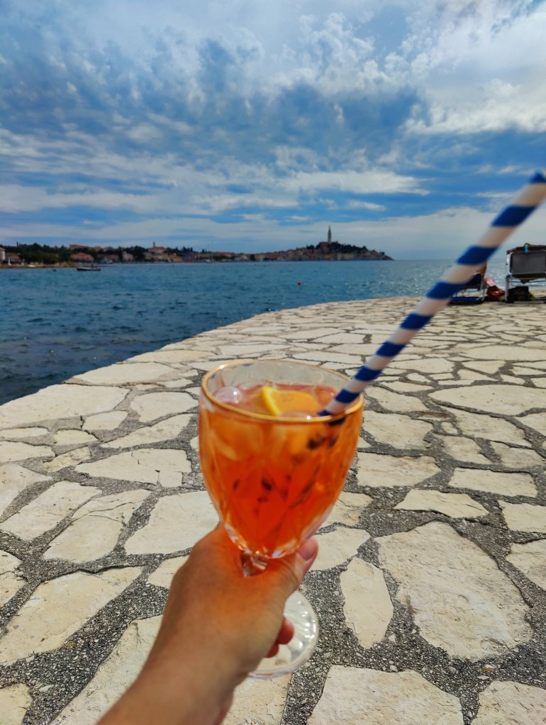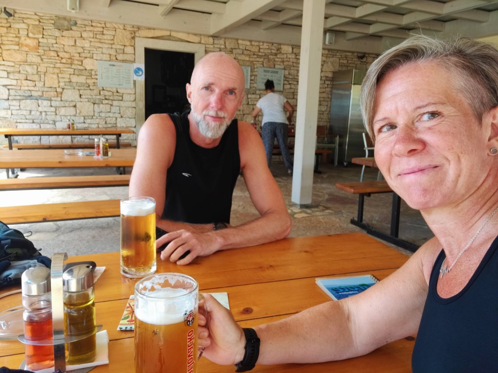 Nu kunde vi njuta( ensamma) sista kvÀllen. Vi gick ner för att avsluta dagarna i Kroatien med sista badet och en drink pÄ beachen.