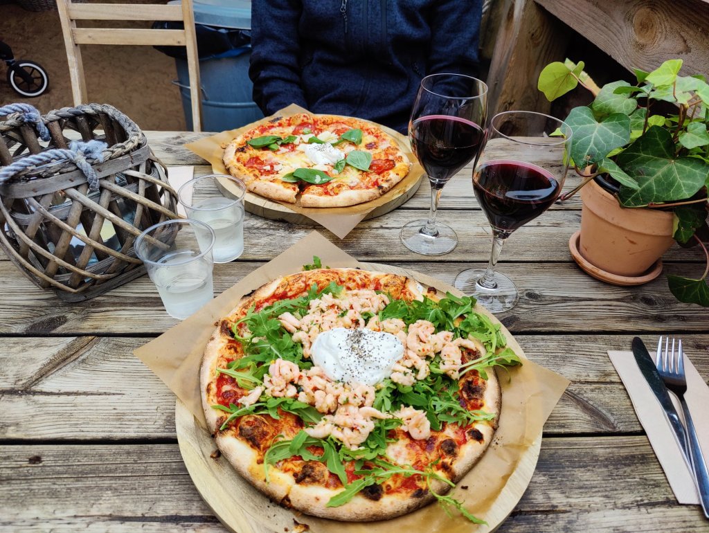 Vi hamnade på Brittas strandveranda. Sist vi var här åt vi jättegoda pizzor som lockade, trots att vi åt pizza i går kväll.