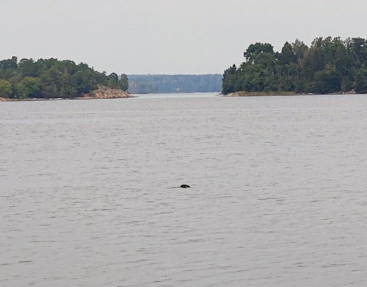 När vi stannade för att luncha dök det upp en säl i vattnet.