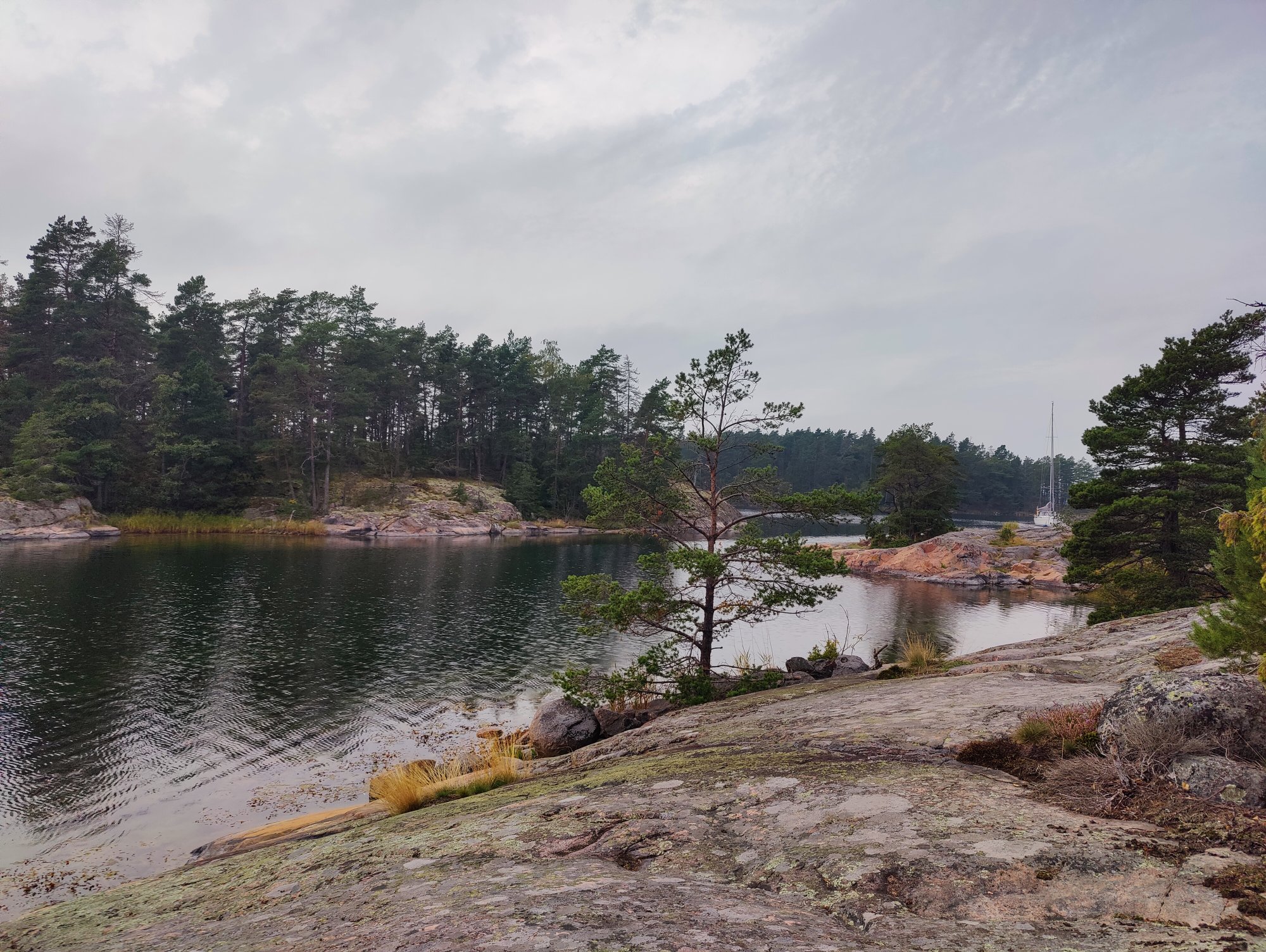 Dimman lättade men det var mestadels grått. Men så fin skärgård.