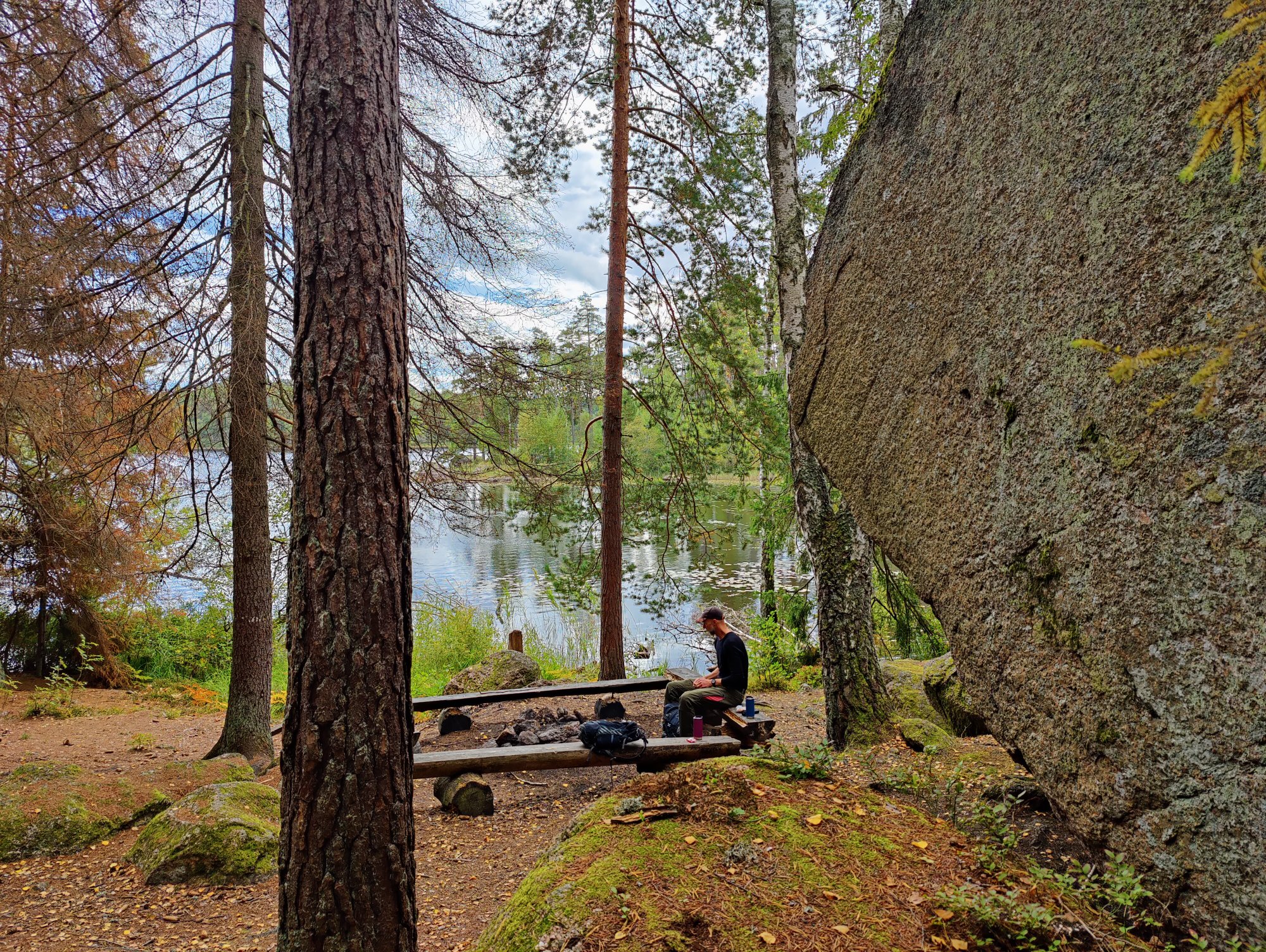 Efter en kort regnskur tog vi oss ut för att tända en liten brasa vid strandkanten.