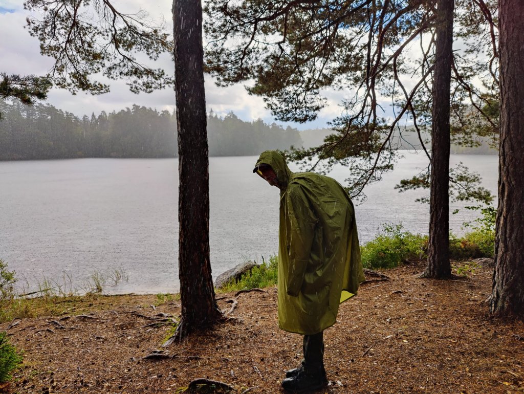 Vi klarade oss nästan hela vägen runt innan regnet kom, tur vi tog med regnkläder.