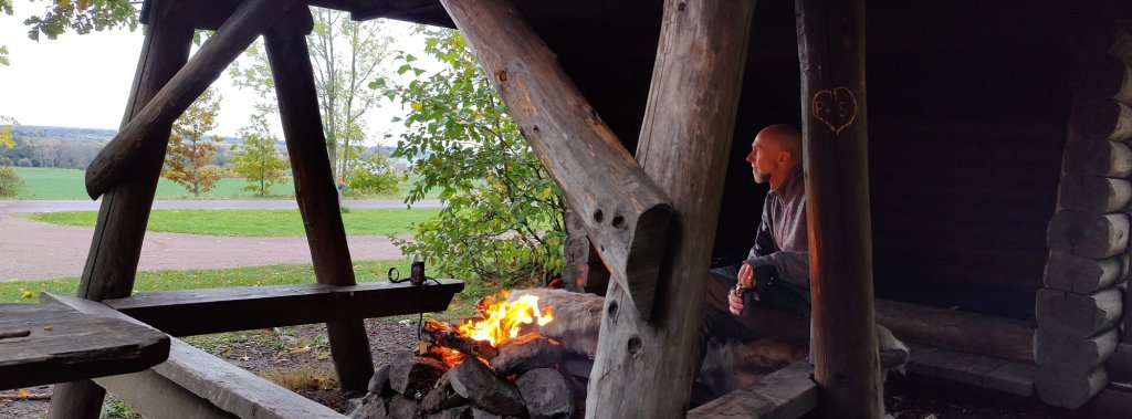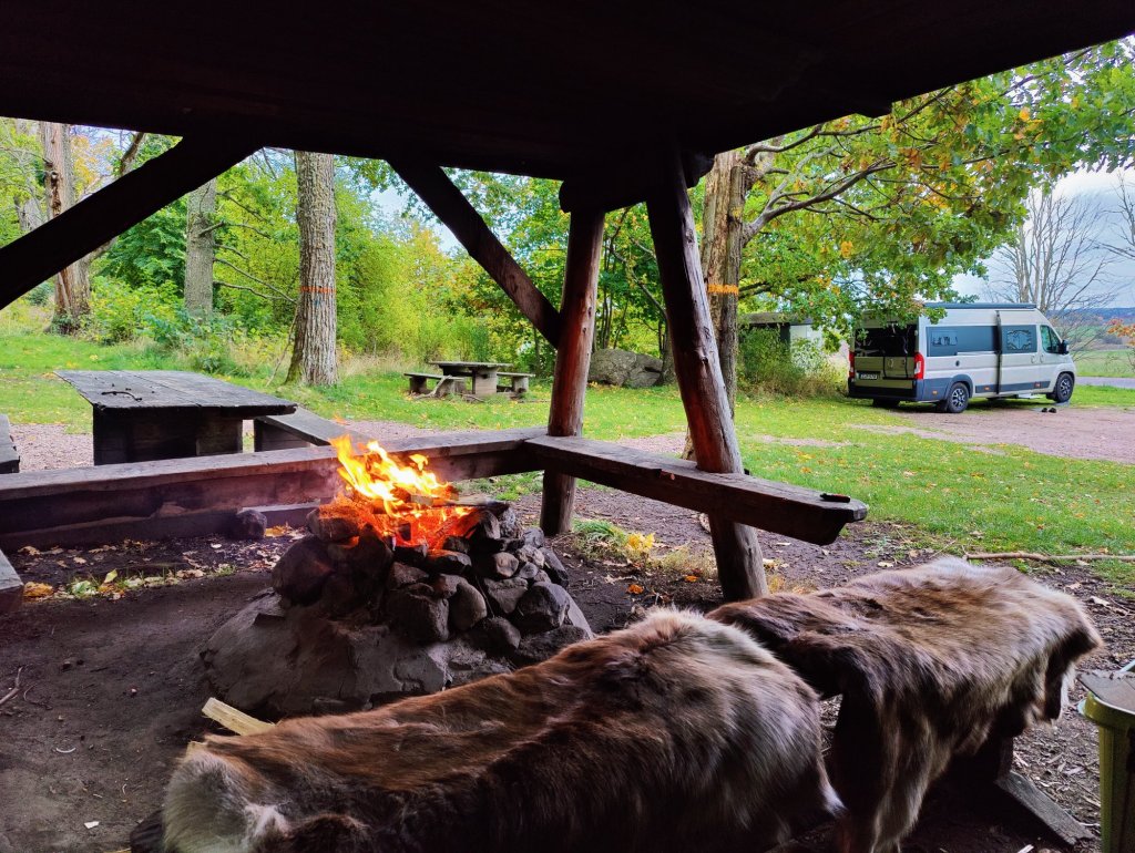 Vi åkte till Omberg där vi startade med en härlig brasa nära Ellen Keys. Här har vi stått förr och fricampat, skillnaden idag är att dom skyltat upp att det är tillåtet att stå 3 husbilar här, bra där, det är kul att det inte alltid blir förbudsskyltar som tillkommer.
