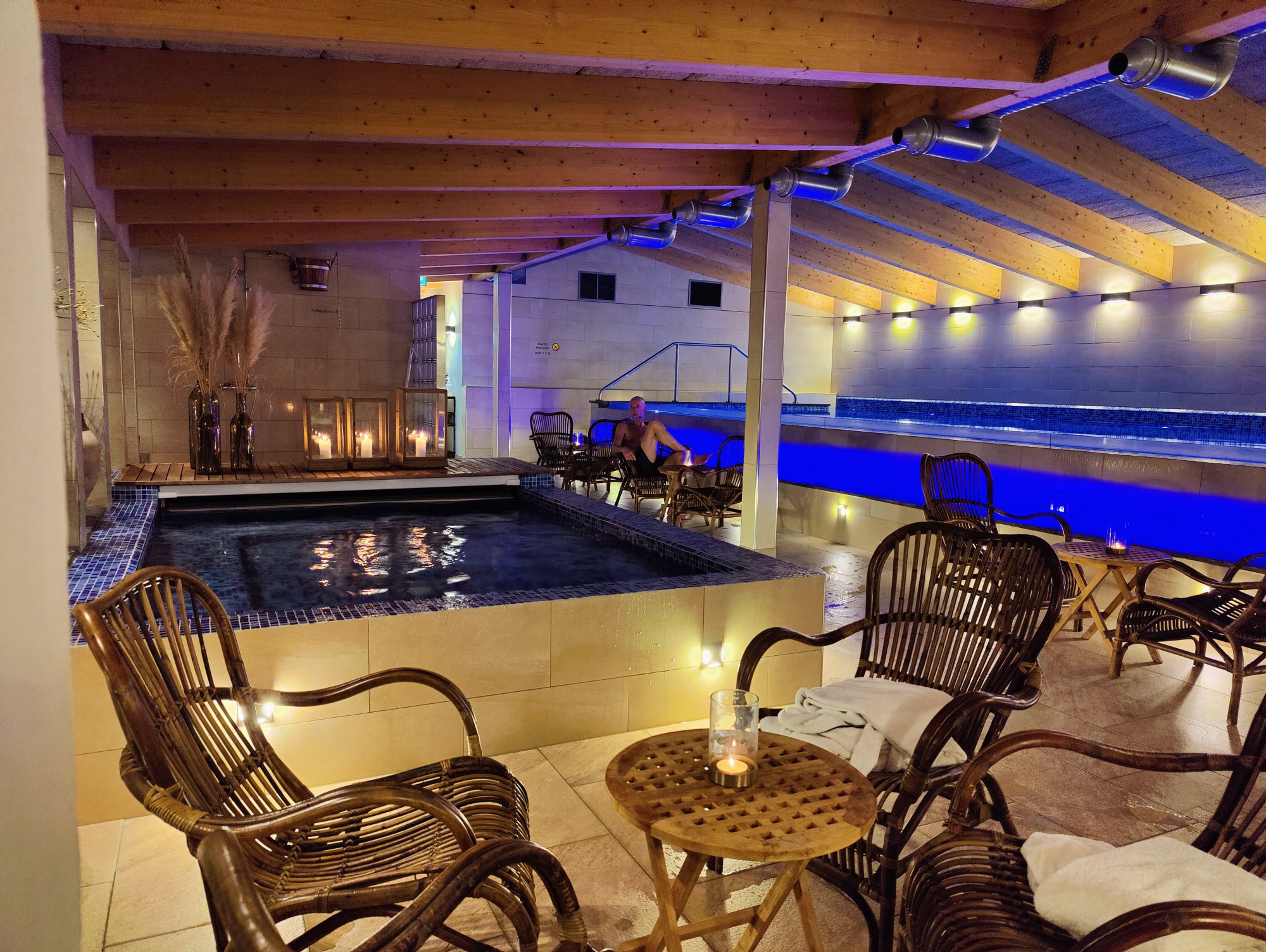 Tiderna för dagspa var uppbokade när vi bokade så mellan 19:30-22:00 fick vi njuta av härliga pooler inomhus och utomhus, bastu och brasa perfekt avslutning på dagen.