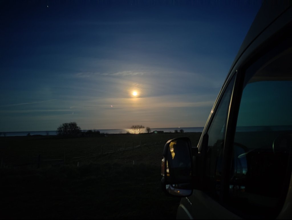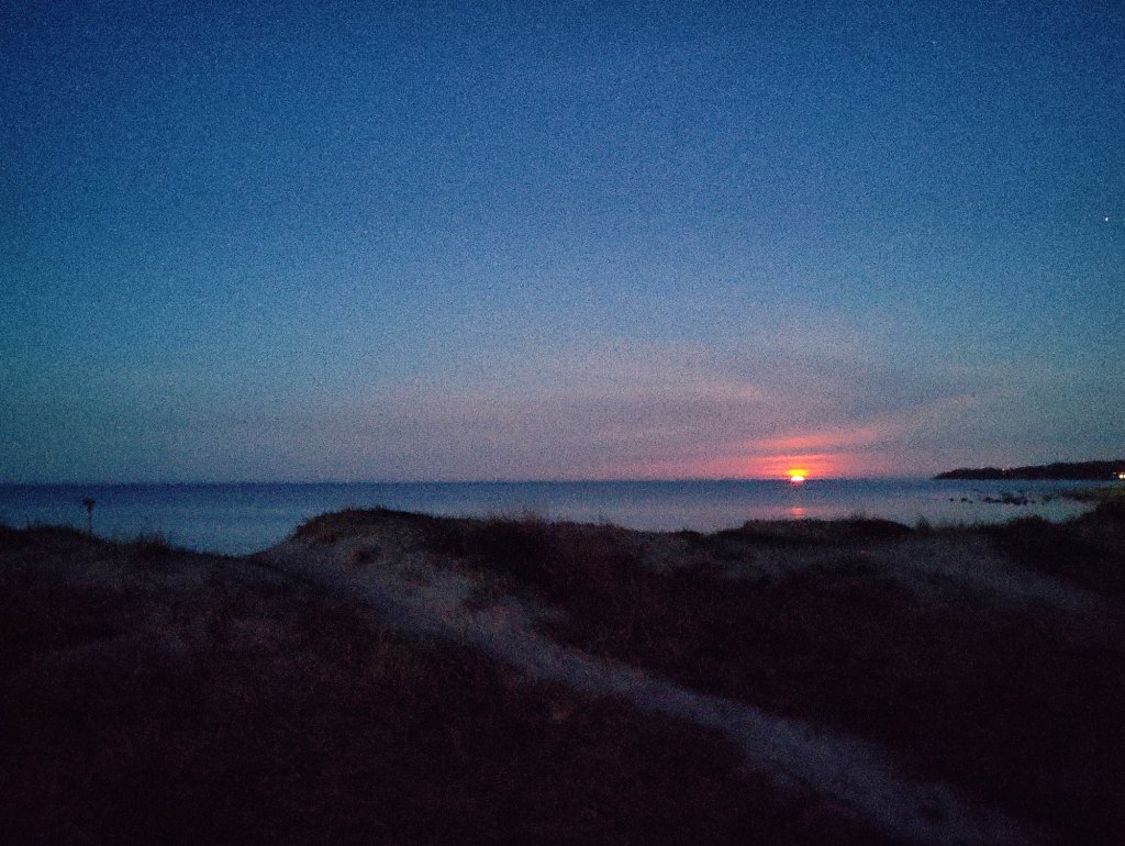 Istället för mångata här fick vi istället se månen stiga från horisonten. Såg nästan ut som en soluppgång, mäktigt.