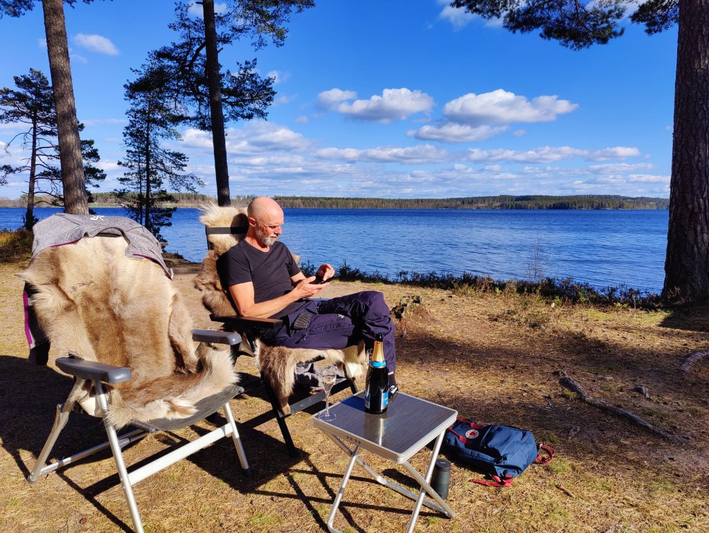 Vi tog stolar och lite bubbel och satte oss vid stranden och här kunde vi till och med sitta i kortärmat.