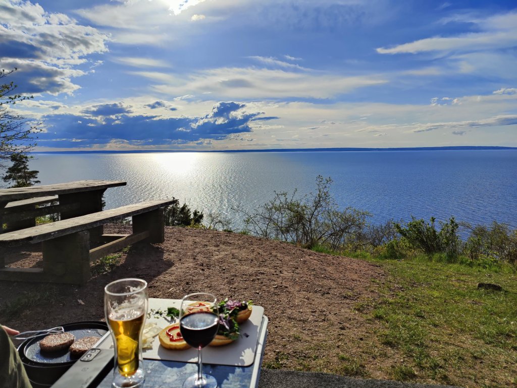 Vi bestämde efter detta att vi stannar ute, och var ska vi då övernatta? Hittade en badplats men inget internet= där kan vi inte vara kvar. Efter koll i diverse appar landade valet på Omberg. Vi åkte mot bättre väder och vindar som blåste rätt det lilla som blåste.