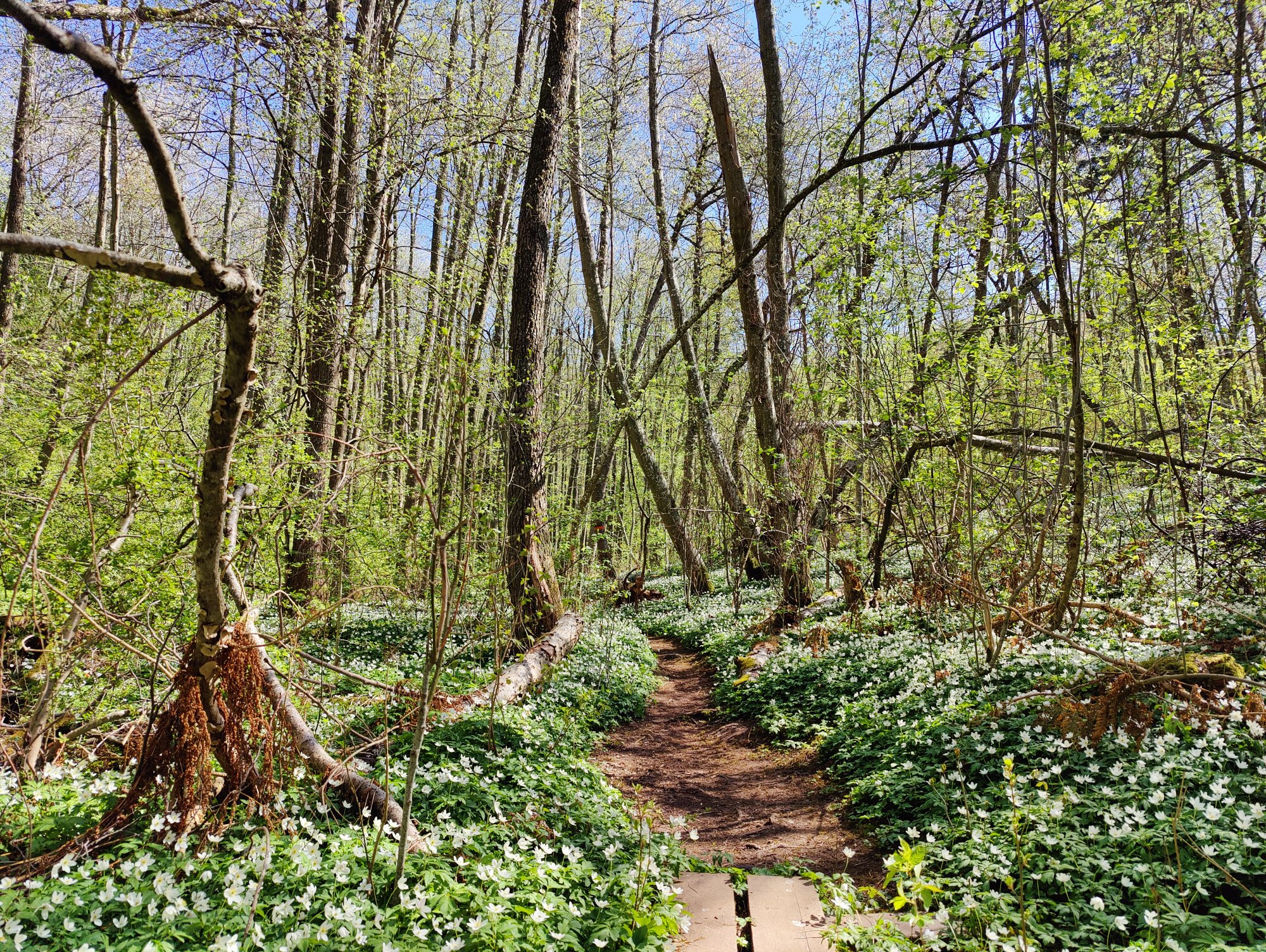 En härlig tid när det finns massor av vitsippor, träden grönskar och bäcken porlar tillsammans med sol och blå himmel är det så njutningsfullt.