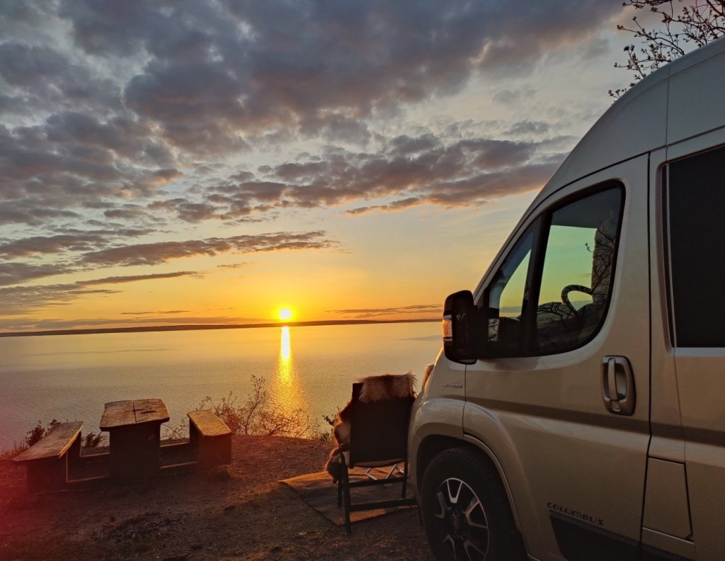 Vi är precis i början av Maj och hur mycket husbilar ute som helst , det blir inte lättare att hitta platser minsann. Efter att kollat i hamnen som var full åkte vi mot utsikten. Här fick vi en perfekt plats, vilken vy över Vättern. Här är skyltat för 3 husbilar men vi var 4 husbilar, en vanlig bil och en husvagn som stod över natten.