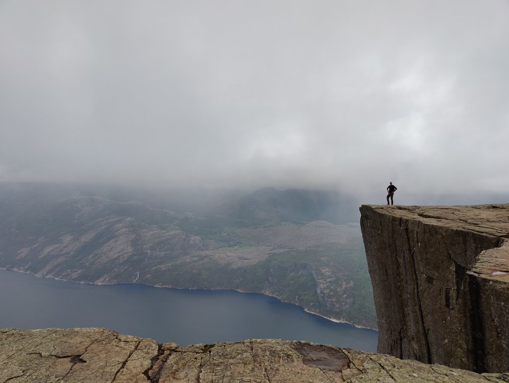 Enligt väderprognosen skulle det regna dagen efter så vi bestämde oss för att gå upp till Preikestolen när vi kom dit. I med lite mat och sedan var det 4 km vandring upp. Det var tur vi gjorde detta på em för vi mötte mycket turister som var på väg ner.