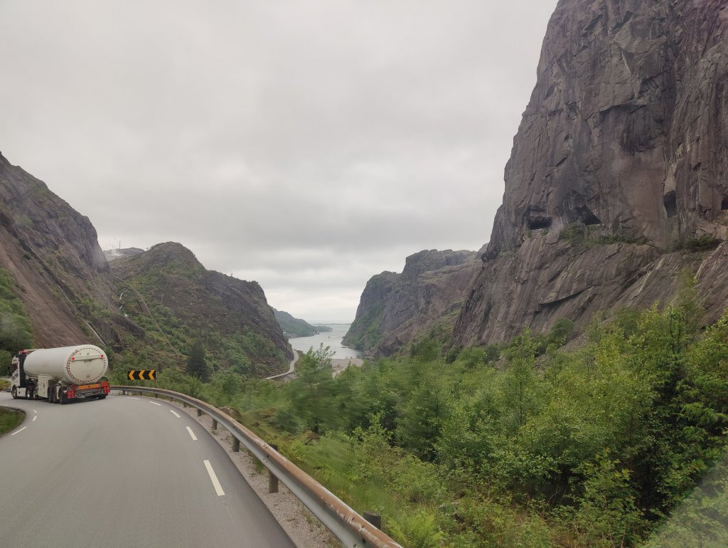 Efter Stavanger var det ganska platt landskap, något vi inte sett sedan vi körde in i Norge. Vi fortsatte längs sydkusten och tillslut började det kulla till sig igen. Som Bohuslän ungefär fast högre berg och klippor.