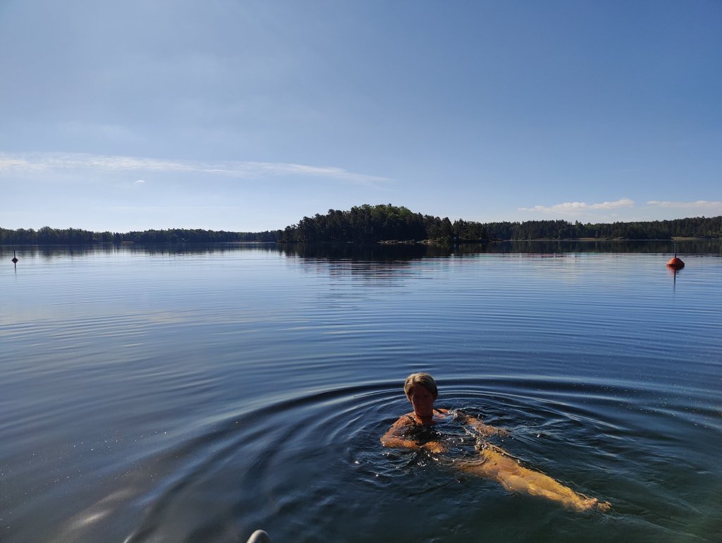 Vi startade dagen med en löprunda på 8,5 km. Herregud, vi är inte kloka, kl 08:00 och så långt har vi inte sprungit på länge. I lugnt tempo gick det faktiskt rätt bra. Och att få hoppa i sjön efteråt var ju så gött. Har blivit flera bad efter det kan jag säga.