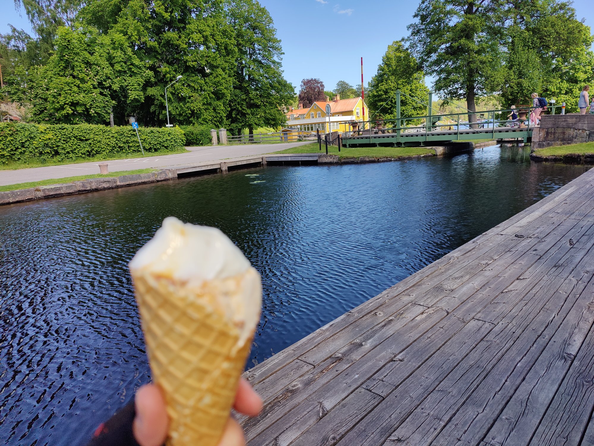 Så gott, älskar glass när det är varmt. Att få äta den vid vattnet vid en sluss är ju bara plus.