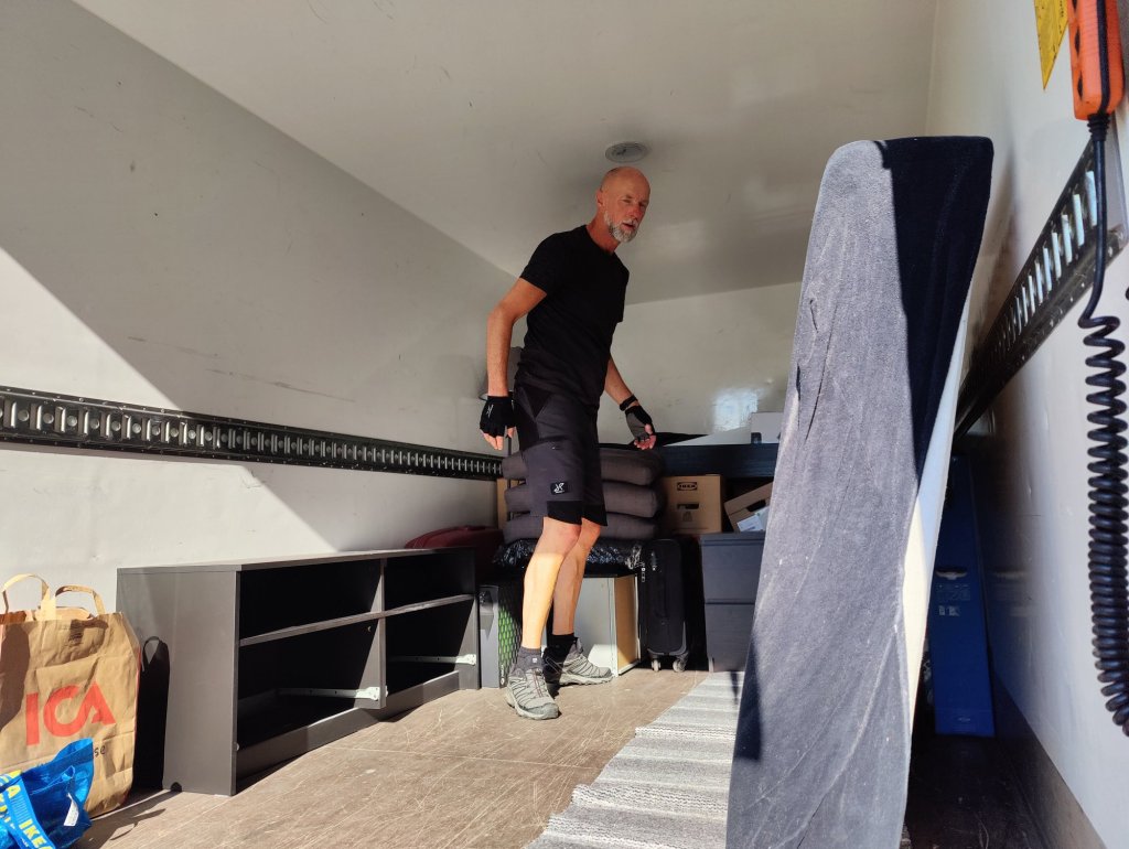 En intensiv helg med ömma muskler som följd, men bra träning. Att flytta i 28 graders värme rekommenderas verkligen inte om man kan välja, vilket man oftast inte kan. Men nu är dom på plats och kan börja fixa och packa upp.