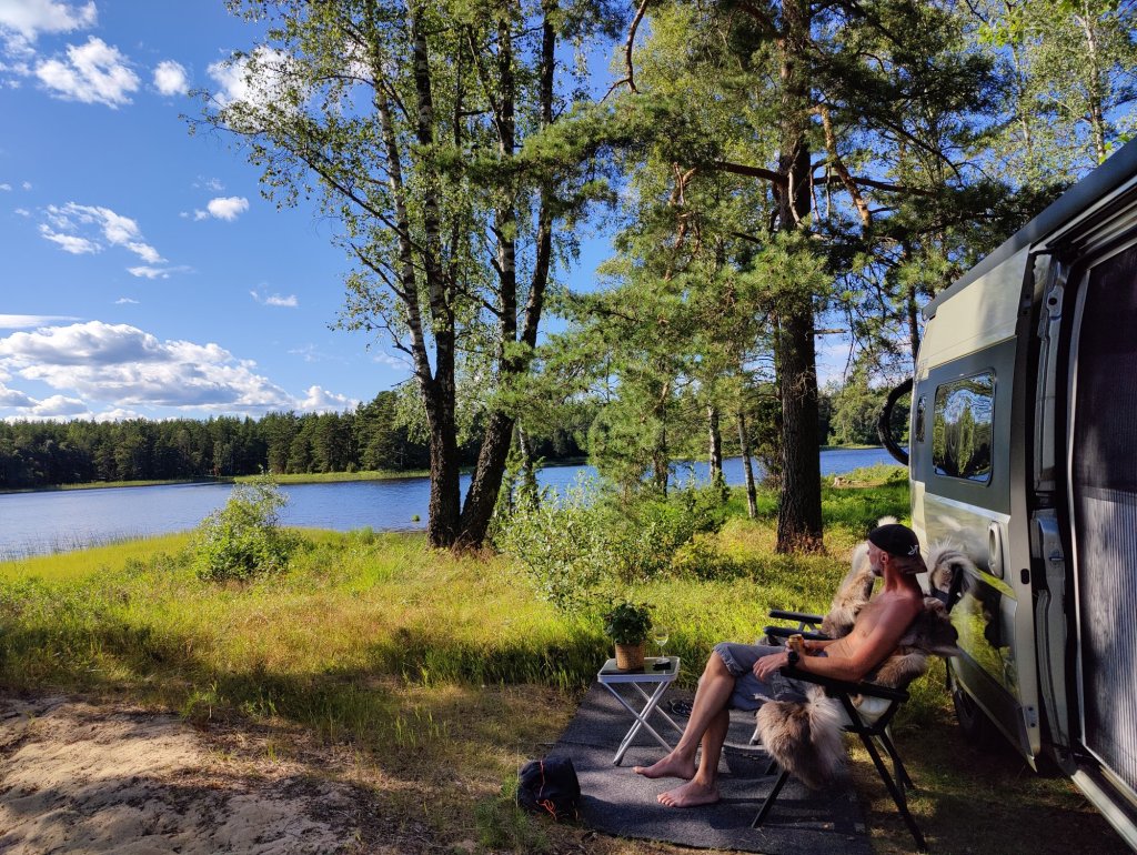 Vi var inställda på att denna helg också skulle bli blåsig. Kusten fick vänta ytterligare en vecka. Istället hamnade vi i Hestra vid kroksjön.